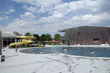 Die Attraktionen sind unsere 68 m lange Wasserrutsche, das Freizeitbecken mit Schwimmbahnen, Wasserpilz, Sprudelbucht, Massagedüsen und ein Strömungskanal.