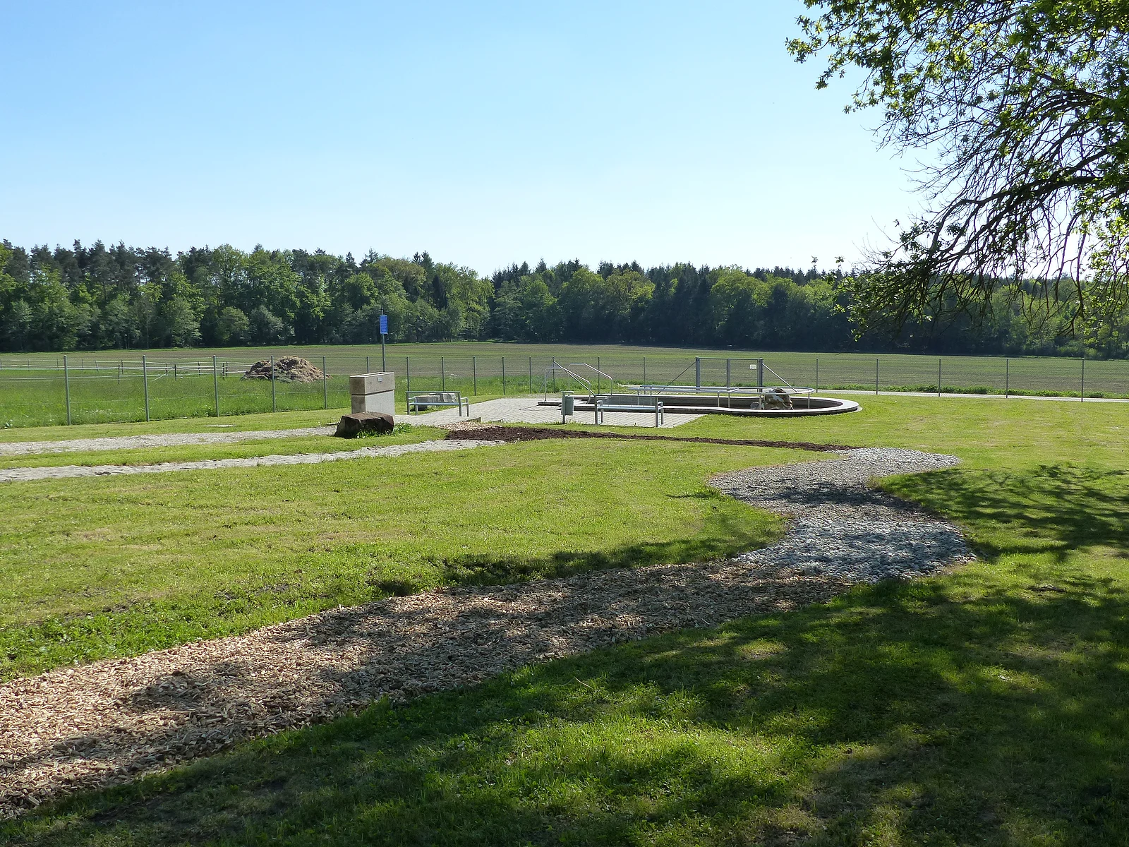 Die Kneipp-Gesundheitsanlage besteht aus einem Tret-Becken, einem Barfuß-Pfad und einem Becken für Arm-Bäder.