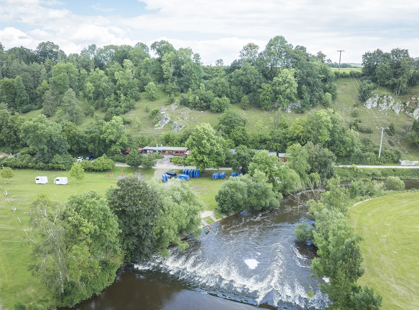 Bootsverleih dirkt am Platz. Vom nahegelegenen Panoramawanderweg können Sie auf die "Bootsrutsche" der Altmühl herunterblicken.