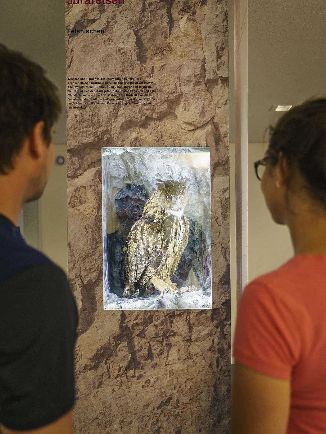 Über zwei Stockwerke erstreckt sich die Ausstellung, die klassische Elemente mit vielen Stationen zum Hören, Fühlen und Entdecken verbindet. Im ersten Stock des Informationszentrums spaziert man durch die Naturlandschaft des Naturpark Altmühltal und entdeckt selbstverständlich auch, was sich alles in dieser herrlichen Natur erleben lässt. Dabei wagt man einen Blick tief hinab in das Innere einer Doline oder entspannt beim Plätschern einer „Steinernen Rinne“.