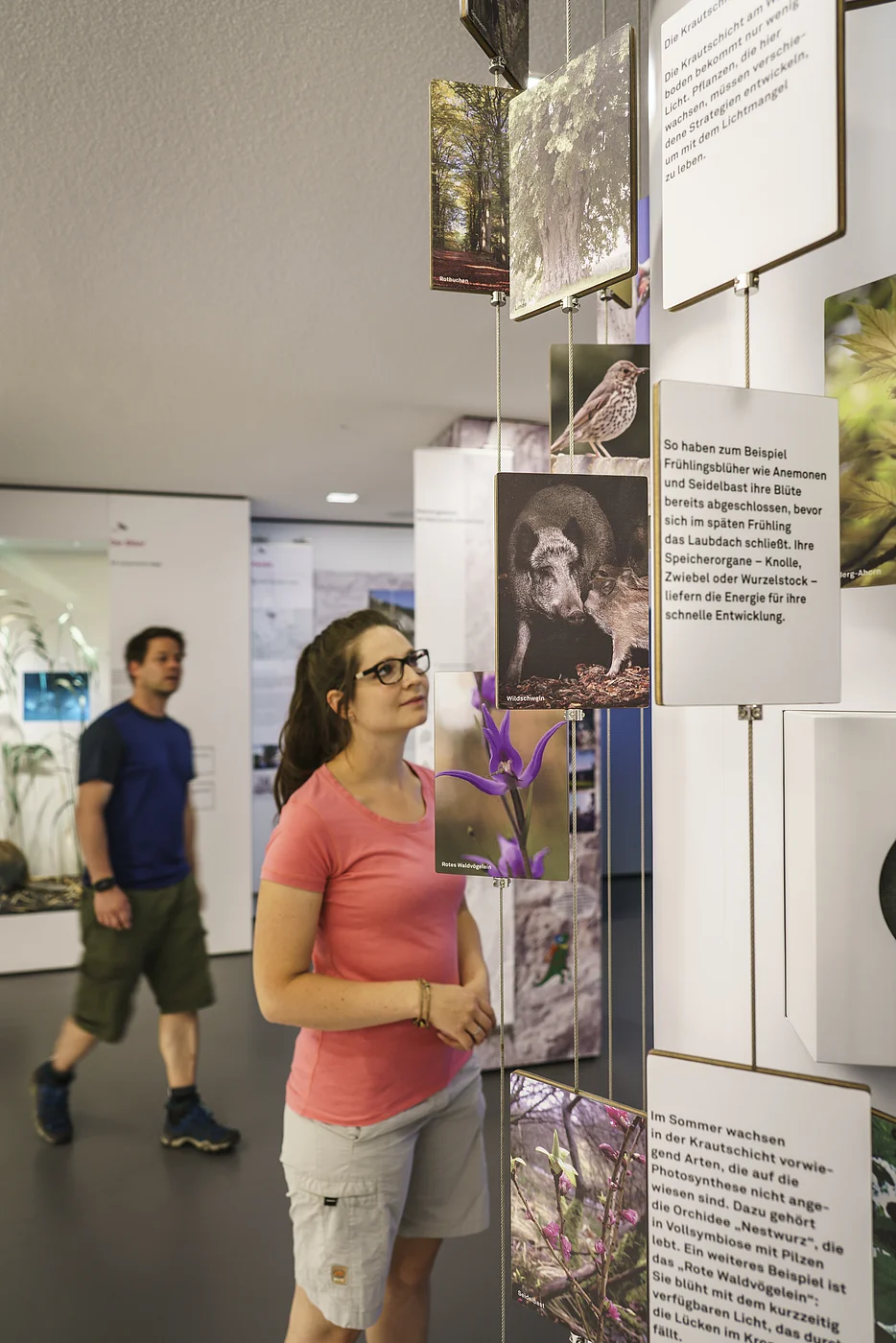 Kinder können in der gesamten Ausstellung hinter Klappen und in Schubern viel entdecken – und extra für sie erzählen auf den Tafeln die kleinen Dinosaurier Fossi und Juvi kindgerecht von der Vielfalt im Naturpark Altmühltal. Der Flyer „Entdeckerquiz“ führt spielerisch durch die Ausstellung.