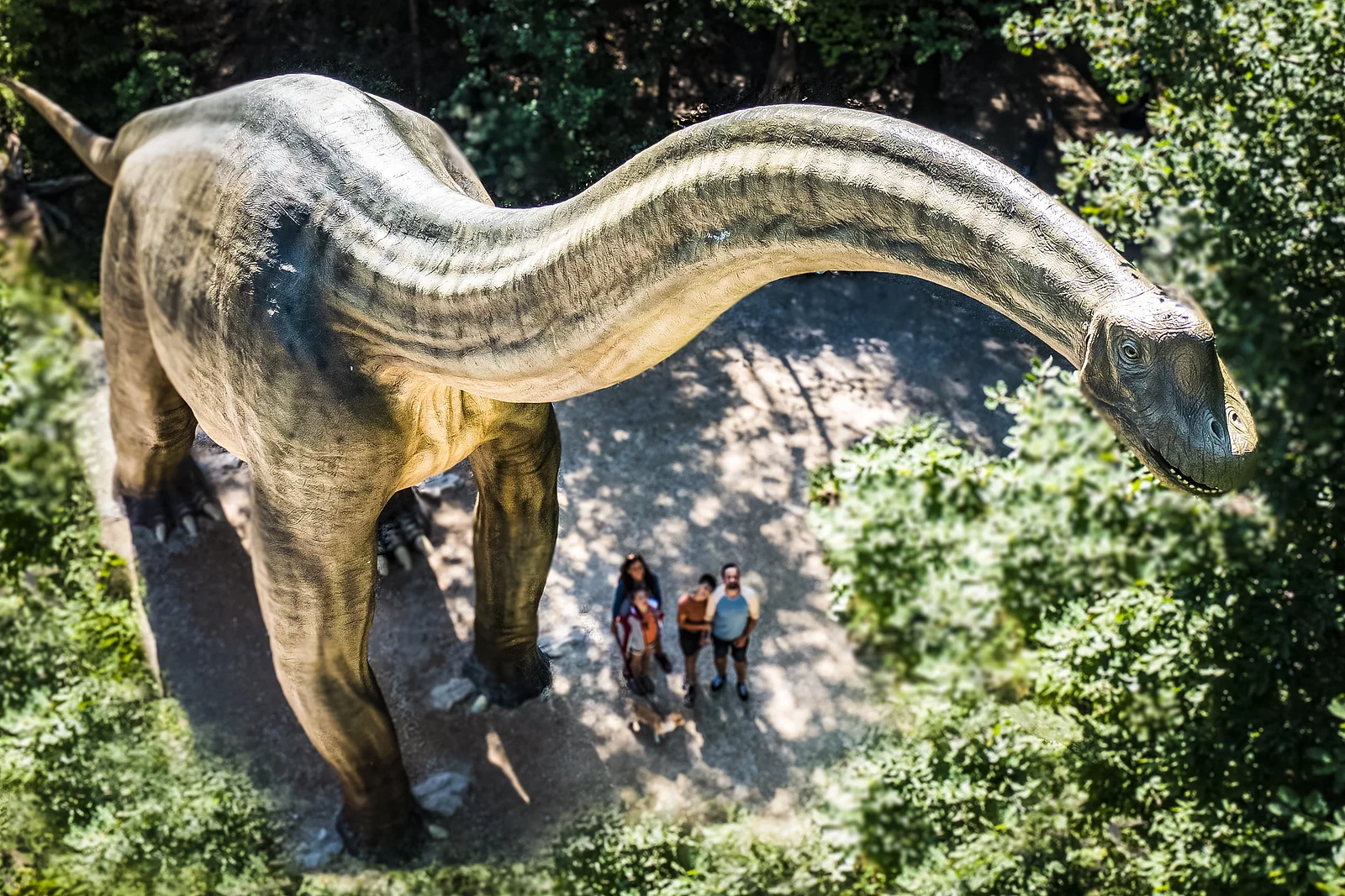 Il sentiero di circa 1,5 km di lunghezza attraversa il bosco e ben 400 milioni di anni di storia geologica: lungo il cammino si incontrano oltre 70 ricostruzioni a grandezza naturale di dinosauri e altri animali primordiali, alcuni dei quali sono addirittura più alti delle cime degli alberi!