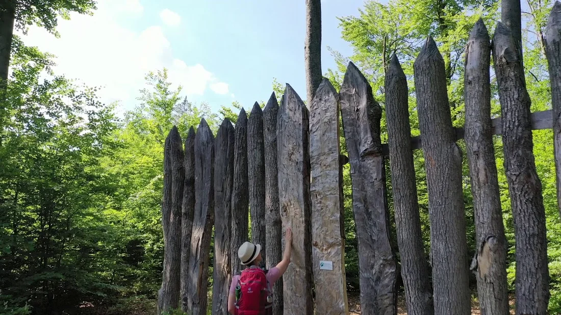 La torre in legno ricostruita sul Pfahlbuck accanto alle fondamenta di una torre di guardia del Limes in pietra mostra una delle prime fasi di costruzione dell'antica linea difensiva romana.