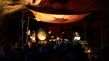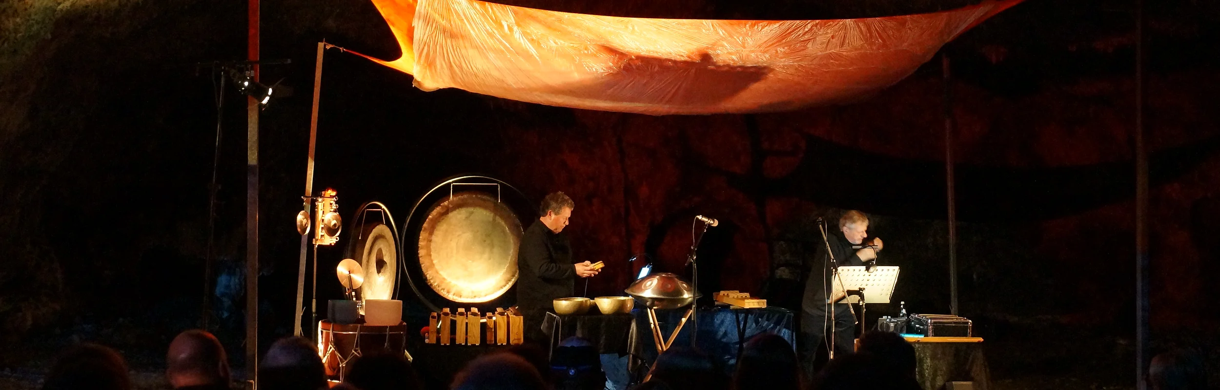 In der “Sphärischen Klangreise” entführen die beiden Musiker das Publikum in faszinierende Klangwelten mit zauberhaften und zeitlosen Melodien. Die Musiker lassen sich dabei von der archaischen Atmosphäre der Höhle inspirieren. Zu hören sind u.a. Gongs, Klangschalen, Handpan, Sansula, Heidschnucke-Bordunhorn, Double-Ocarina, Pocket-Clarinet, Roto Sound, WuWu, Chimes, tibetische Glocken, Alfaja, Saxophon, Flöten aus Indien und Peru.